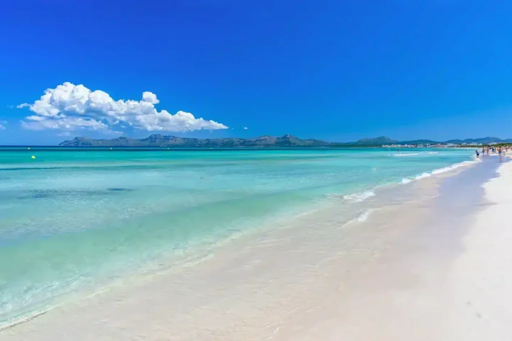La playa de Alcúdia es conocida por su arena fina, su orilla amplia y por un mar que suele estar en calma cuando no hay viento.